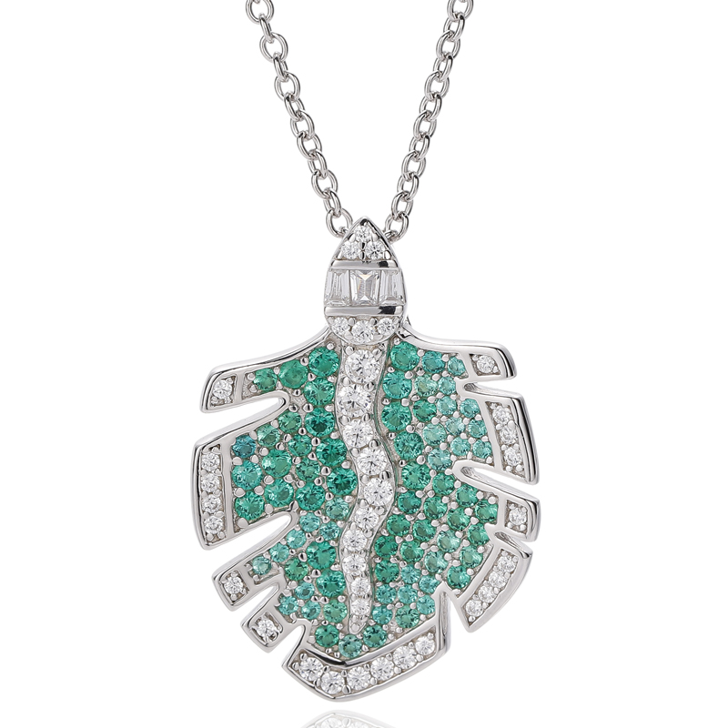 3.71قلادة فضية من الروديوم مرصعة بأحجار الزركون الأبيض المكعبة الدائرية النانوية الخضراء والمدببة